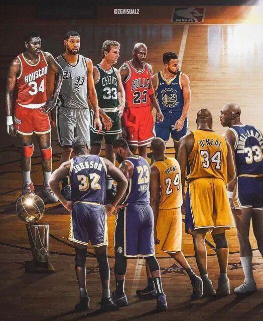 【库里+乔丹+伯德+奥拉朱旺+邓肯】这个组合: