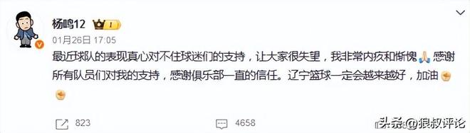 杨鸣个人选择请辞,离开辽宁男篮主帅的位置。尽管俱乐部层面全力挽留,但杨鸣离队的心意已决,最终,这名辽宁男篮队史成绩最好的主教练,离开帅位。