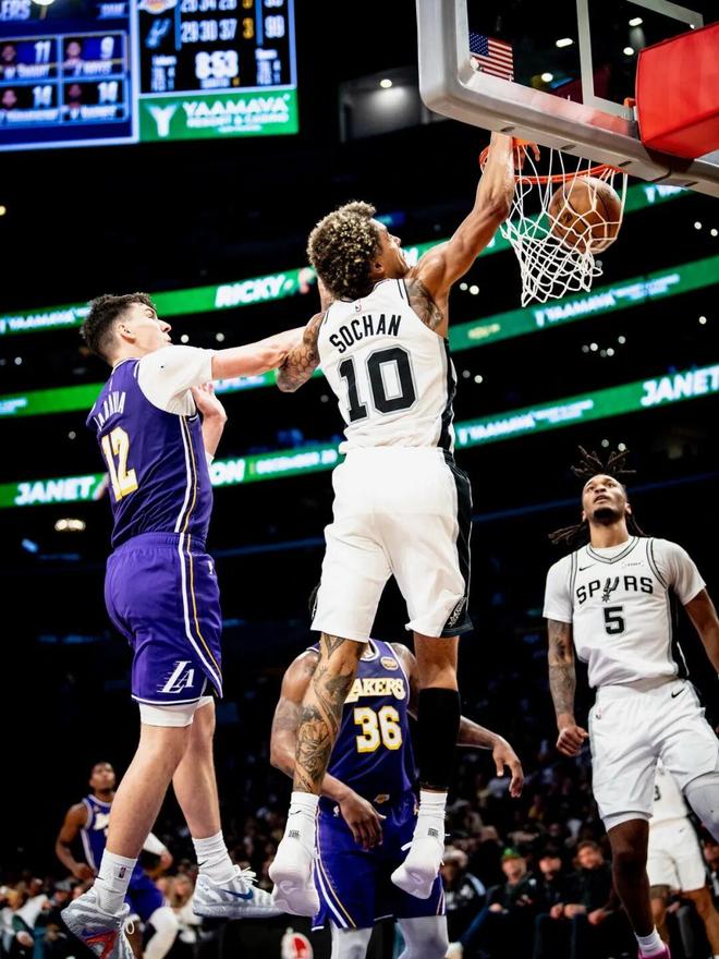 马刺曾对索汉寄予厚望,甚至愿意为他打破常规。新秀赛季,这个发型色彩斑斓的波兰前锋就获得了56场首发机会,场均26分钟里贡献11分5.3篮板,他用拼劲和独特的个性迅速赢得了球迷喜爱。