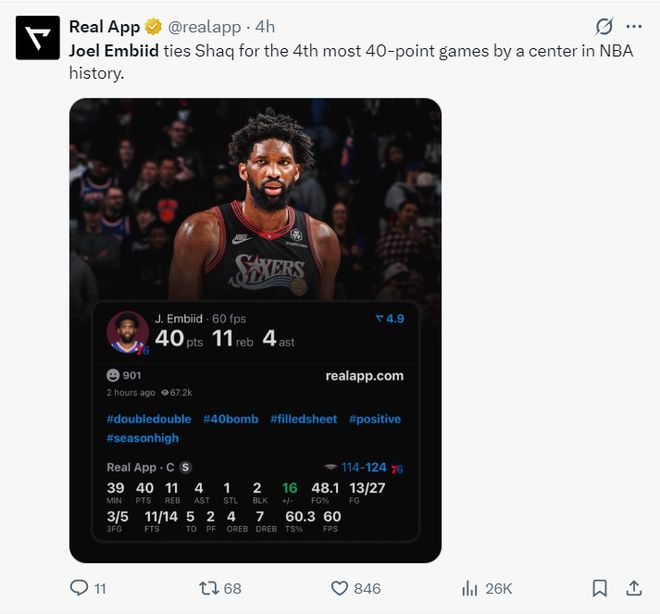 4.这是恩比德2024年后首次拿到40+;
