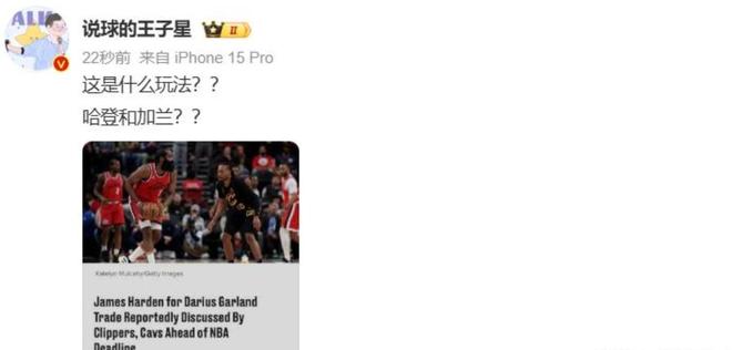 可能在他看来,哈登加盟骑士后,会和加兰配合,组成一支竞争力强大的队伍。