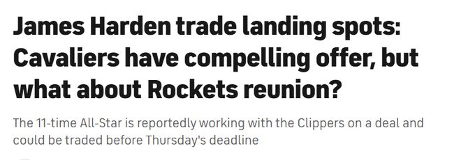 综合各方面来看,哈登本赛季的表现依旧亮眼。他场均贡献25.4分4.8篮板8.1助攻,他或许是NBA现役荣誉最丰硕却未获总冠军戒指的球员,生涯末期,他显然希望加盟一支能让自己冲击总冠军的球队。由于哈登拥有交易否决权,他可以挑选下家。知名美媒CBS撰文分析哈登的三个可能下家,具体如下——