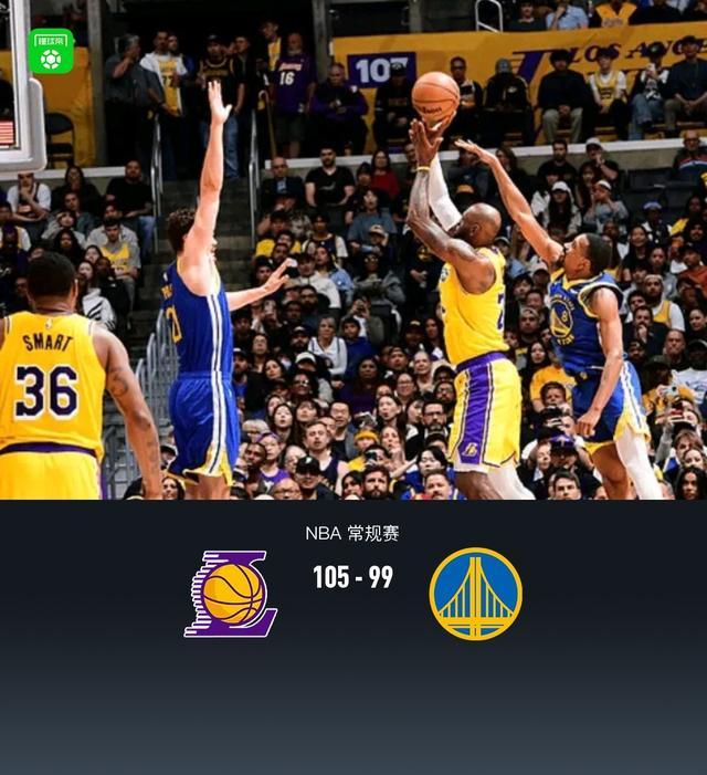 第四节,开节勇士穆迪、波杰姆斯基得分,湖人八村垒连续两记三分回应,但随后湖人断电,勇士斯宾塞、格林、桑托斯接连三分迫近至1分,湖人迅速调整詹姆斯下场休息,在里夫斯、肯纳德领衔下一波攻势领先两位数,勇士无力反扑,比赛逐渐失误悬念,最终湖人105-99战胜勇士