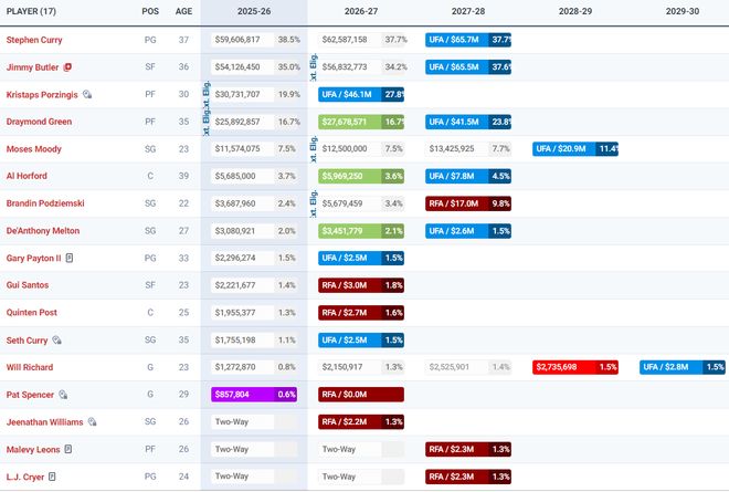 勇士队刚刚转正了斯潘塞的合同,随后用双向合同签下了前火箭球员内威,目前勇士队是14+3名单,大名单还留了一个名额等心仪之人,虽然有了波神的加盟,但这支勇士队在本赛季很难是冲冠球队,还是努力竞争一个附加赛上半区名额。