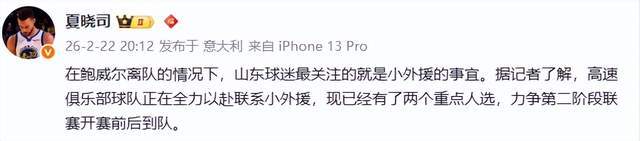至于小外援?根据山东媒体人夏晓司的报道,山东男篮俱乐部已锁定两名重点目标,正全力推进签约,目标明确:第二阶段开赛前,必须到位