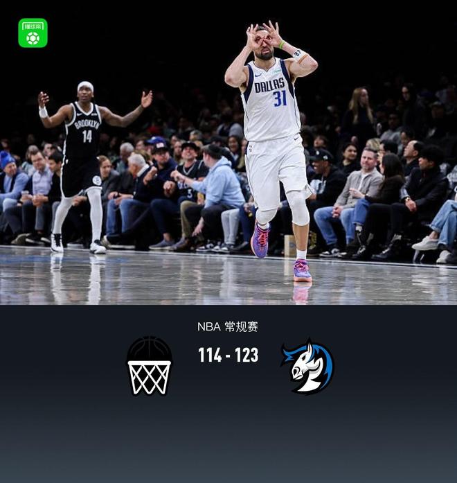 第四节篮网曼恩拿下10分,独行侠马绍尔拿下6分,最终篮网114-123不敌独行侠