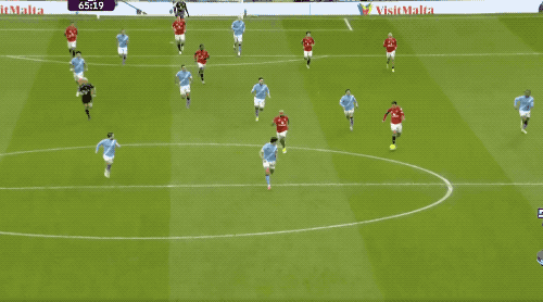 伤停补时阶段,曼联第五次将球送进曼城的球门,库尼亚传球,芒特替补上场2分钟包抄破门,但库尼亚越位在先。