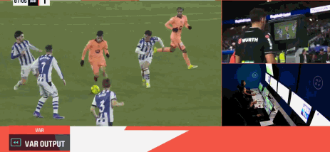 这粒原本可使比分变为0-1的进球,最终成为巴萨第三个被取消的进球。五分钟后,奥亚萨瓦尔为皇家社会取得领先。对于大多数球迷而言,VAR图像并不具有决定性,这位加泰罗尼亚前裁判也表示强烈怀疑:“他们花了10分钟,肯定是在编辑那张图像,我不相信这张图像,我完全不认为它有可信度。”暗示漫长的复核过程可能是因为在编辑图像。