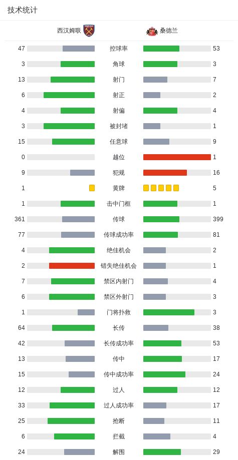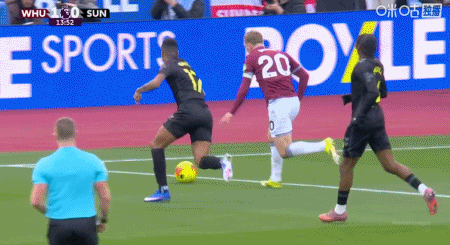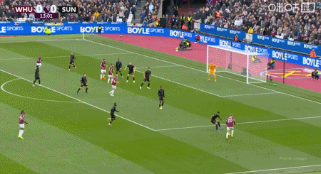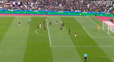 第43分钟,费尔南德斯外围远射破门,西汉姆联3-0桑德兰