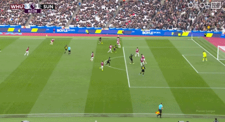 第14分钟,鲍恩右路底线传中,萨默维尔头球破门,西汉姆联1-0桑德兰