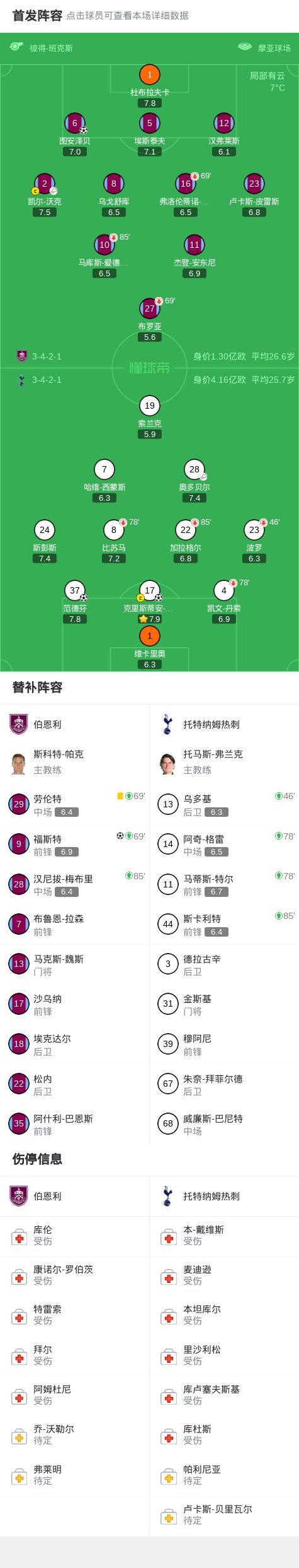 北京时间1月24日,英格兰足球超级联赛第23轮,伯恩利主场对阵托特纳姆热刺。上半场,范德芬打破僵局。沃克传中,图安泽贝扳平比分。下半场,福斯特破门帮助伯恩利反超比分。比赛尾声阶段,罗梅罗冲顶完成绝平。全场比赛结束,热刺2-2战平伯恩利,遭遇英超联赛连续5轮不胜。