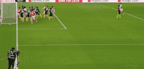 破门乏术的时候,还需要定位球来辅助,第84分钟,萨卡开出角球,梅里诺混乱中将球打进,扳平比分。
