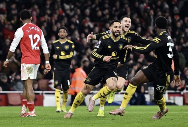 此时的阿尔特塔,已肉眼可见的慌乱,接连调兵遣将加强进攻。终于,第82分钟,替补登场的梅里诺子再度化身“梅超锋”在角球混战中补射得手将比分扳平。然而,竞技体育素来是越怂越怕就会越来什么。仅仅过了3分钟,同样替补登场的库尼亚前场得球后内切狂奔,从左路一直飚到右路,丝毫不带犹豫便是张弓搭箭一脚势大力沉的远射直挂死角,为曼联完成逆转绝杀。