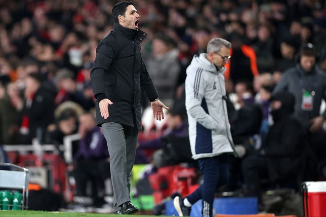 尽管坐拥天时、地利、人和,阿尔特塔还是怂了——尽管他排出了个4-3-3的最强阵,但却并未开场就发动猛攻,而是……收缩阵型防反击。