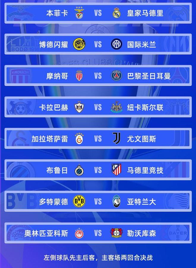 如果豪门球队都顺利晋级,那么欧冠16强可能会产生巴黎vs切尔西/巴萨、尤文/马竞vs利物浦/热刺、皇马/国米vs曼城等焦点对决。
