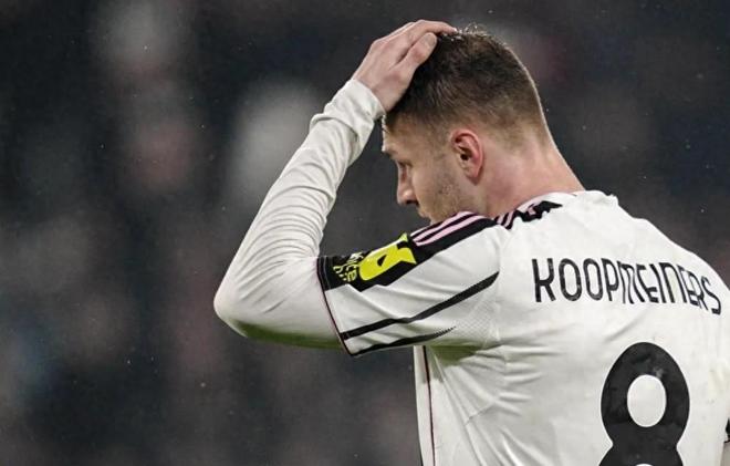 第27分钟,尤文迎来了一次疑似进球的机会,库普梅纳斯在禁区外围一脚低射,皮球精准钻入球门左下角,眼看就要破门得分,可裁判却示意进球无效——原因是凯夫伦-图拉姆在越位位置干扰了门将,属于违规越位,煮熟的鸭子飞了,尤文球员们满脸无奈,士气也受到了一定的影响。