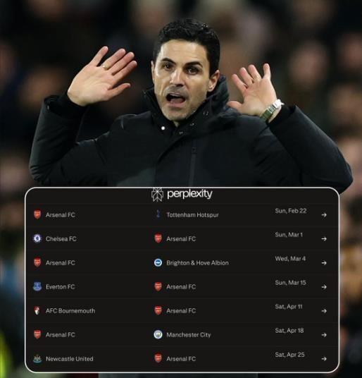如果说战平狼队只是一次“意外”,那接下来的赛程将不再允许任何意外。本周末,阿森纳将客场挑战刚刚换帅的同城死敌热刺。北伦敦德比从来不需要动员,但在士气受挫、核心伤退的节点上碰上德比战,无异于“刚出狼窝又入虎穴”。紧接着,3月1日还要主场迎战切尔西。最为重要的一场比赛,那就是4月18日,伊蒂哈德球场,阿森纳与曼城的直接对话,极大概率将成为决定冠军归属的“天王山之战”。此外还有纽卡、布莱顿、埃弗顿等队,这些比赛对于枪手来说同样不容有失。