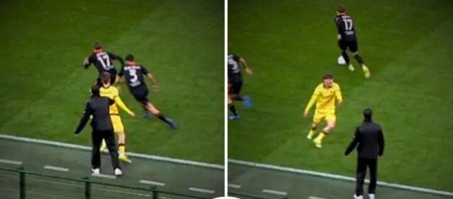意甲第24轮补赛,米兰主场1-1战平科莫。比赛中,萨勒马科尔斯抢球时,法布雷加斯伸手接触球员后背。