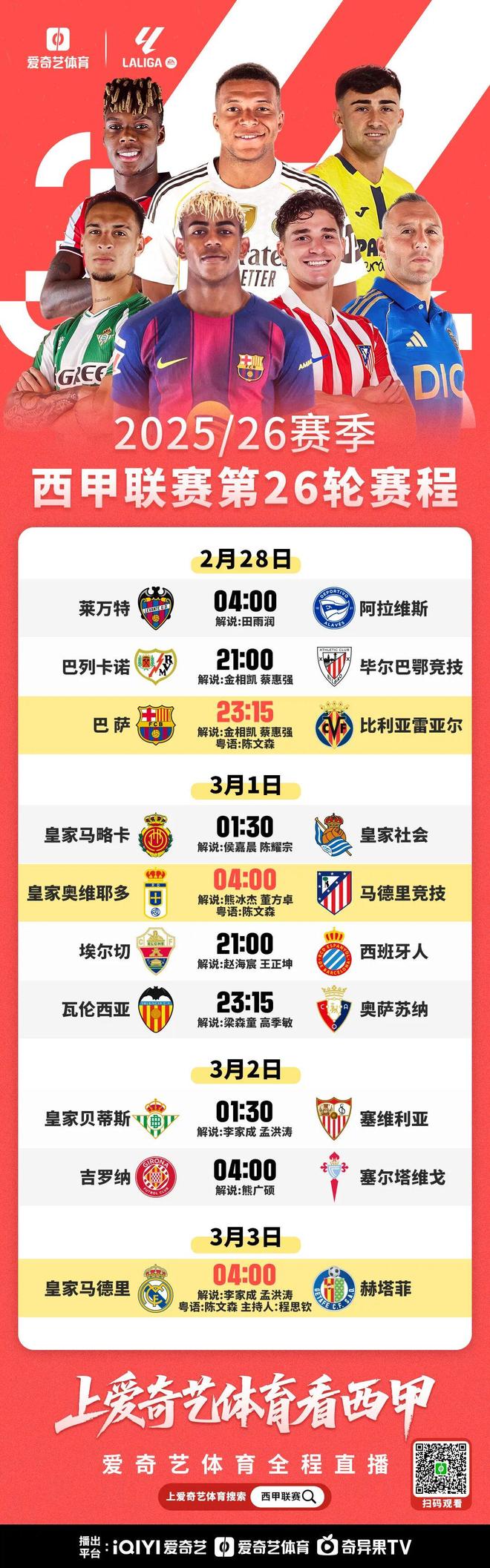 今晚打响!西甲26轮强强对话:巴萨战黄潜 红蓝军团保榜首